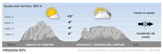 Sulla cresta di confine il tempo sarà in prevalenza soleggiato. Verso sud invece ci saranno nubi basse persistenti.