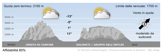 Sui monti altoatesini splenderà il sole con qualche innocua nube cumuliforme.